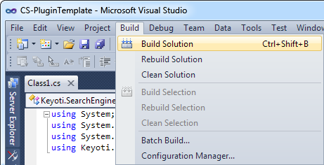 The project will be created for you. Click Yes to open the project in Visual Studio. Next Step 2. Build the project. From Visual Studio, select Build Solution to produce the plug-in DLL.